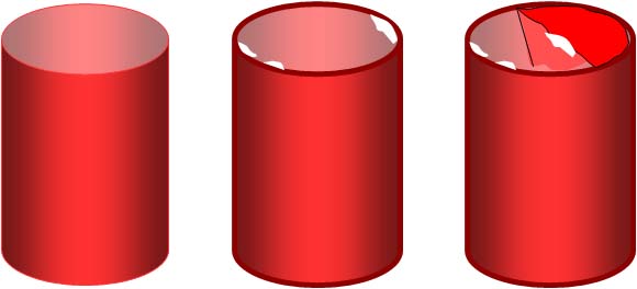 Izquierda: aorta normal. Centro: aorta arteriosclerótica con pared engrosada y placas de ateroma calcificadas. Derecha: En la disección aórtica, el desplazamiento de la capa íntima se acompaña de la placa calcificada, lo que explica el signo.