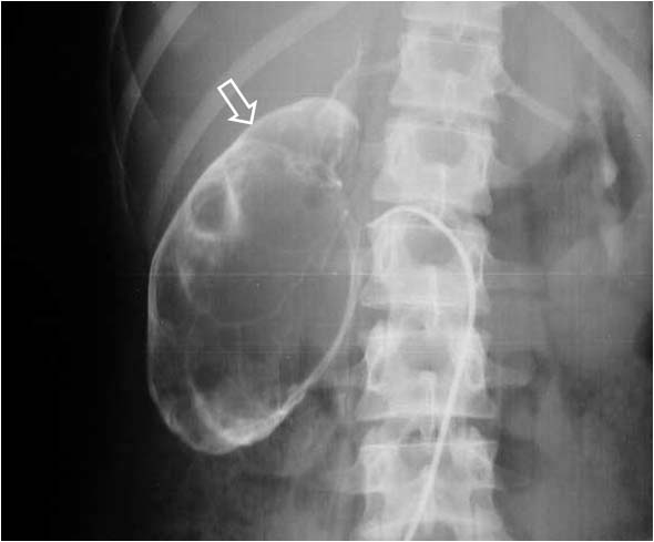 Otro ejemplo de este signo en un paciente con poliquistosis renal.