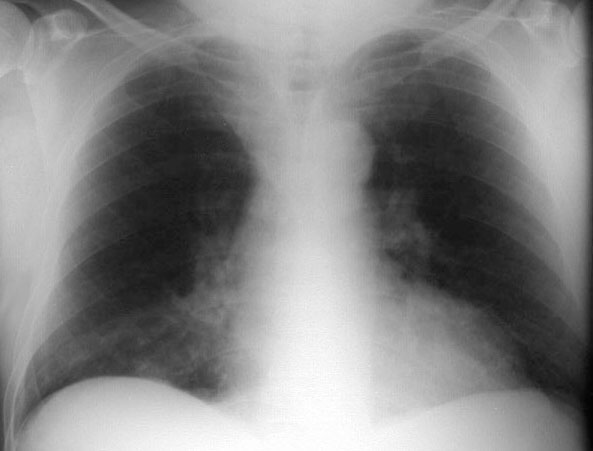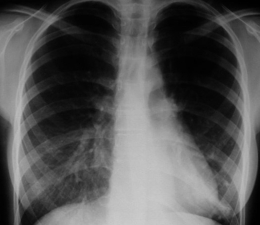 Aunque la fotografía no es óptima, existe un aumento de densidad retrocardiaco por el colapso del lóbulo inferior izquierdo.