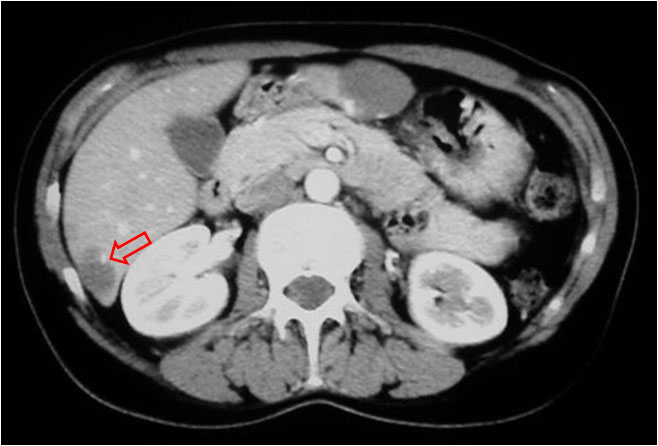 Es un signo poco sensible pero muy específico: 100 %. Se ha descrito en metástasis de tumor carcinoide y cánceres de mama, colon y estómago. El signo es más visible a los 10 minutos tras la administración de contraste.
