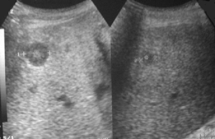 Lesiones hepáticas no filiadas mostrando este signo en ecografía.