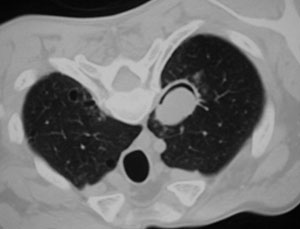 La imagen corresponde a un paciente con carcinoma epidermoide de pulmón.