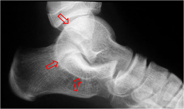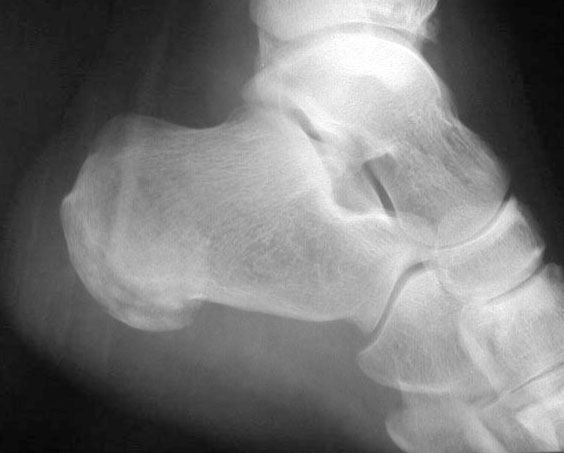 Otro ejemplo del signo de la almohadilla grasa del talón en una fractura del calcáneo.