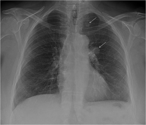 Figura 2. Ejemplo de hallazgo. Se ven dos nódulos pulmonares encontrados de forma casual en un estudio preoperatorio. Correspondían a metástasis de un cáncer de colon no conocido.
